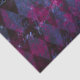 Un patrón dorado de desplazamiento superpone un fondo con diamantes morados y azules con escritura. Perfecto para el arte de la desconexión, artesanía de papel o envoltura de regalo. ¡Asegúrate de comprobar la bolsa de regalo correspondiente!