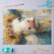 Este vibrante diseño de descomposición de medios mixtos presenta una vaca de aspecto caprichoso con cara blanca y nariz rosada, adornada con una flor corona de girasoles y otras flores pequeñas. La piel de la vaca se funde en un fondo de color que incorpora parches de pintura azules y amarillos, fragmentos de texto y elementos artísticos texturados. Los colores vivos y las texturas en capas crean un encanto rústico y alegre, lo que hace que este diseño sea perfecto para la artesanía creativa, la decoración de una casa de campo y los proyectos artísticos DIY. obras de arte de una casa de campo, huellas animales rústicas, papel de artesanía vibrante, un diseño caprichoso de temática campestre, ilustracion artístico floral de vaca, decoración de granja texturizado, alegre huella animal, colorido colorido collage de estilo casero y singular. decoración temática, encantador diseño rústico creativo