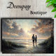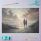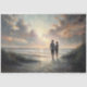 Esta escena costera magistralmente representada captura un momento íntimo de contemplación en el umbral entre la tierra y el mar. La composición guía la vista a través de un portal naturalista de hierbas de dunas azotadas por el viento, que conduce a dos figuras que comparten un momento profundo contra un paisaje marino dramáticamente iluminado. La paleta es particularmente digna de mención, con dorados y ámbares luminosos que atraviesan azules pizarra y grises peltre sofisticados, creando una atmósfera etérea que parece suspender el tiempo mismo.