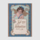 Ilustración antigua diseño de vacaciones de San Valentín Feliz día de San Valentín victoriano con un querubín que lleva un sombrero de cartero está entregando el correo, cartas de amor a mi San Valentín. Ephemera antigua de amor y romance. Un borde dorado decorativo rodeado de corazones de oro sobre un fondo azul.
