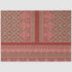 El diseño parece ser un diseño textil tradicional. Presenta un patrón simétrico con una columna central y bordes intrincados a cada lado. La paleta de colores combina tonos tierra como el rojo y el marrón, con motivos detallados en blanco y beige. Los patrones consisten en formas geométricas, figuras parecidas a los diamantes y elementos decorativos que se asemejan a los diseños florales. Este tipo de diseño se asocia a menudo con la artesanía y la artesanía cultural, mostrando la habilidad necesaria para crear patrones tan detallados y complejos. Podría ser parte de una alfombra, un pedazo de ropa u otro objeto textil.