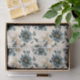 Flores azules oscuras sobre un fondo blanco cremoso.
