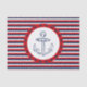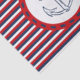 Diseño náutico con decoración de ancla dibujada a mano sobre fondo rayado azul, rojo y blanco
