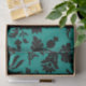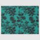 Dibujo de diseños florales negros en un fondo verde azulado. Excelente para trabajos de arte, artesanía de papel o envoltura de regalo.