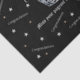 Este papel de tejido se muestra con una huella de celebridad de las estrellas, felicitaciones de menor tamaño esparcidas por todas partes en gris suave y taupe sobre un fondo negro con una mayor congratación de color gris plateado suave y una impresión de corona brillante plateada con tu título y año personalizado. Debe personalizar este papel tisular.