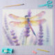 This tissue paper features a watercolor illustration of a delicate dragonfly resting among blooming lavender stems. With shimmering wings in shades of gold, pink, and violet against soft purple blossoms, the artwork captures the peaceful beauty of nature in soft detail.