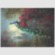 Una obra de arte audaz y dramática de estilo gótico con un majestuoso pavo real rodeado de rosas rojas profundas, que combina la opulencia con un ambiente romántico oscuro.