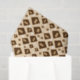 A refined geometric pattern featuring brown and white squares, diamonds, and hexagons on a warm beige background.