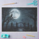 Papel De Seda Eerie Spookoky Graveyard con luna llena y gato neg