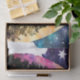 Perro recuperador de acuarela esperando: silueta contra luna llena, colorido con nubes y árboles, arte generado por Ai por minx267