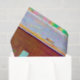 Amor hippie boho marrón color amarillo rosa mod de la casa de podge artesanías deslizar papel de tejido. Embalaje de regalo Groovy bohemia retro años sesenta. Diseño rústico y colorido de verano. Imagen de Marg Seregelyi Photography.