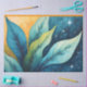Hojas verdes azules contra un sol y estrellas nocturnas AI Art de minx267
