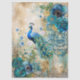 Papel De Seda Elegant Distressed Teal Blue Florals & Peacock