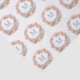 A timeless holiday gift wrapping tissue paper featuring an elegant watercolor Christmas wreath in soft dusty blue, red, and peach, delicately framing a personalized monogram in modern typography.