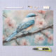 This design features a serene bluebird, its soft blue and white feathers beautifully contrasting with delicate cherry blossoms. The pale pink petals and deep red centers of the flowers bloom against a dreamy, soft-focus background, evoking a tranquil garden scene. It's a charming, artistic touch that transforms any present into a truly special delivery.