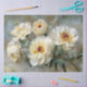 A soft and elegant oil painting of white peonies in full bloom. Gentle brushstrokes and warm tones create a peaceful, timeless floral artwork perfect for any space.