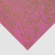Eleva tu regalo con este papel de seda lujoso y artístico. Este diseño presenta un fondo sofisticado con gradiente rosa que se desvanece sin problemas de un magenta profundo a un suave rosa polvoriento/rosado. Superpuesto sobre esta base ombré hay un intrincado patrón de filigrana dorada de inspiración vintage que presenta giros barrocos ornamentados y volutas de estilo damasco.