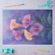 Hermosas obras de arte a la acuarela de lirios morados y naranjas sobre un fondo suave y mezclado, celebrando la belleza intrincada de la naturaleza y el arte floral de calidad, inspirando relajación y creatividad.