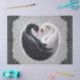 Elegantes cisnes forjando un corazón juntos. Un cisne es majestuosamente blanco y exude gracia, mientras que el otro está en negro profundo y tiene un aura misteriosa alrededor de él. Simbolizan el amor y la conexión entre dos almas.