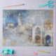 La imagen es una pintura artística y detallada que representa una mezcla de elementos arquitectónicos de la arquitectura islámica. Cuenta con cúpulas, minaretes y arcos de diseño intrincado, que muestran la belleza y la complejidad del arte y la arquitectura islámicos. El cuadro combina tonos fríos y cálidos, predominando el azul y el oro, creando un contraste visual sorprendente. El uso de texturas y elementos abstractos añade profundidad e interés a la composición, convirtiéndola en una obra de arte cautivadora. Pintura artística detallada, arquitectura islámica, cúpulas y minaretes, arcos de diseño intrincado, belleza y complejidad, tonos azules y dorados, contraste llamativo, textura y elementos abstractos, arte cautivador, mezcla arquitectónica.