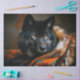 A dramatic black wolf decoupage for furniture wrapped in an ember-rust and turquoise lodge blanket. The onyx coat and warm fur trim add depth and contrast, giving dressers, hutches, and armoire panels a modern-lodge edge. Colors play beautifully with deep teal, saddle brown, and warm greige finishes. Printed for clean burnishing and smooth sealing, it delivers a polished focal point that turns rustic flips into high-impact showpieces.