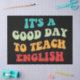Diseño, perfecto para cualquier profesor de inglés, profesor de inglés de secundaria o futuro profesor de inglés que ame la enseñanza! Cita de 'Es un buen día para enseñar inglés' para que un profesor se ponga el primer día de clases, trabajar o de vacaciones. ¿Eres un orgulloso profesor de escuadrón de inglés? ¡Acentúa tu estilo con esta fantástica cita! Gran regalo para un amigo profesor de inglés, madre maestra de inglés, padre del equipo de inglés, esposa del profesor de inglés de la escuela o marido asistente del profesor de inglés.