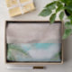 Escena de playa pintada con brisa isleña, con olas del océano, playa de arena y palmeras, con un hermoso cielo azul turquesa. ¡Un papel tisú para diseño de boda tropical de verano o destino de boda! ~ ¡Consulte mi tienda para ver todo el conjunto de boda para este diseño!