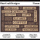 Bold Coffee Typography Decoupage Tissue with Espresso, Cappuccino, Latte and Mocha Text, Dark Rustic Café Background for Furniture Upcycling.
