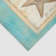 Madera subrayada en un color verde azulado bonito con una estrella de mar en el centro. Gran diseño con playas.