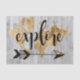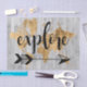 Un diseño lindo con una frase de texto dorada y un mapa dorado del mundo sobre un fondo de tabla gris. Artista: Studio W