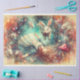 Alice and the White Rabbit float down through a dreamy portal filled with fantastical mushrooms, watercolor splashes, and glowing colors. The surreal atmosphere captures the curious beauty of Wonderland perfectly. A fun choice for craft lovers, fantasy fans, and daydreamers alike. Use it to elevate journal pages, decoupage projects, or unique gift wrap. Let the magic of a fall through the unknown inspire your creativity. Explore more whimsical fantasy designs in my Alice In Wonderland tissue paper collection!