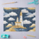 Este original diseño de papel de tejido descolorido presenta un bonito faro con un telón de fondo de ondas onduladas y un cielo vibrante. El faro, de estilo lúdico y pintado a mano, se erige alto, guiando a los barcos por el océano caprichoso y agitado. Los colores cálidos del faro contrastan maravillosamente con el fresco azul y verde del mar, creando un ambiente tranquilo y animado. Este diseño generado por IA aporta un toque de serenidad costera y un toque imaginativo, lo que lo hace perfecto para la elaboración de artesanías, la decoración doméstica o la adición de un elemento náutico a cualquier proyecto.