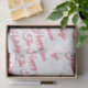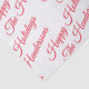 Este papel de tejido festivo rojo y blanco es personalizado con Felices Fiestas o su propio mensaje especial de vacaciones y su nombre, lo que lo convierte en una maravillosa adición a un regalo. Sería perfecto agregar una sola hoja a una bolsa de regalo con algo de papel simple rojo o blanco.
