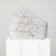 Un gran complemento para el envoltorio de regalo de tu fiesta de compromiso, este papel tisú personalizado con nombre en negro, blanco y dorado 'Para el amor, la risa y la felicidad eterna' seguro que será apreciado. Sobre fondo blanco, el sentimiento de felicidad eterna se representa en una hermosa caligrafía con letras a mano en falso dorado. Los nombres y el resto del texto están en una fuente sans serif negra y elegante, para un diseño sofisticado. Este papel tisú es parte de un conjunto coordinado, así que asegúrate de buscar en la colección de abajo más productos coordinados con este tema.