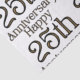 Este artículo de papel tisular incluye las palabras "Feliz 25 aniversario" en un tipo de letra original con letras doradas y contorno negro. Un mayor peso de papel proporciona más relleno para elementos delicados o más pesados con impresión de borde a borde de color en papel de 18 libras. Excelente cualquier regalo que dé ocasión para cualquier cosa, desde cumpleaños, graduación, bodas o aniversarios.