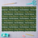 El papel tisular es verde oscuro. Tiene un patrón de texto para un mensaje personalizado como Feliz Navidad y el nombre del donante. Feliz Navidad aparece en un elegante guión de oro falso (no de Relieve metalizado). El otro texto es blanco. Todo el texto se puede editar.