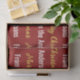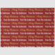 El papel tisular es rojo profundo. Tiene un patrón de texto para un mensaje personalizado como Feliz Navidad y el nombre del donante. Feliz Navidad aparece en un elegante guión de oro falso (no de Relieve metalizado). El otro texto es blanco. Todo el texto se puede editar.