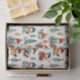 Papel higiénico para Navidades con adorables y extraños trineos para los niños y pinos de ladrillo rojo y turquesa. Brillante acuarela de ladrillo rojo, dorado y verde turquesa.