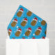Adorable y divertida patata de dibujos animados marrón con un gorro de Santa rojo y blanco. La patata está en un estilo de arte de dibujos animados y coloreada de marrón, tiene brazos y dedos de palito y una gran sonrisa feliz con puntos para los ojos. El gorro de Santa en su cabeza es rojo con un borde blanco y un pompón blanco colgando. Está dentro de una forma ovalada azul claro con un marco azul oscuro y dos hojas de acebo verdes con dos bayas rojas en la parte superior del óvalo. El color de fondo es un azul claro brillante con copos de nieve blancos flotando para darle un ambiente festivo a este adorable papel tisú de temporada.