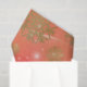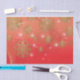 Navidades diseño de papel tisular con copos de nieve dorados y luces brillantes sobre un fondo rojo gradiente.