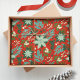 Este hermoso Navidad envuelve papel con elementos florales a mano en varios tonos de verde, menta, verde azulado, blanco roto. Incluyen pino, flores, estribos, hojas, bayas en un diseño moderno y elegante. El color de fondo es un Navidad tradicional, de color rojo clásico. Material gráfico original de Caroline Bonne Müller