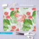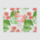 Diseño acuático con flores y pájaros flamencos, monstera y hojas de palma.