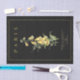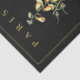 Papel de papel de pañales de color que parece una página de título francesa antigua con un ilustracion de flores de foxglove amarillo en el centro y la palabra "París" en la parte superior. Texto dorado y borde sobre fondo negro.