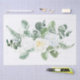 Rosas blancas, gypsophila delicada, eucalipto verde, ramas de pino y helecho de flores de ramo acuático.