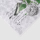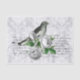 Un bonito collage de un pájaro, rosas blancas y escritura sobre un fondo de damasco gris.