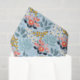 Flores de arte pop, estilizadas y coloridas, con acentos azules, verdes y negros sobre un fondo azul celeste, hacen de este papel de tejido perfecto para cualquier ocasión.