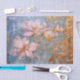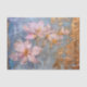 flores rosa bonito sobre un fondo azul con acentos dorados. Este diseño de papel de tejido tiene un aspecto texturado. Utilícelo para proyectos de desacoplamiento, revistas de desecho, collage o envoltura de regalo.