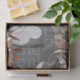 Elegantes florales en marrones, arándanos, tostados y grises y un par de pájaros respaldados por gris pizarra.
