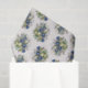 Ilustracion botánico a la antigua de flores de bello en azul, violeta y blanco.