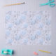 Este diseño muestra flores azules claras redondas con tallos de carbón sobre un fondo azul claro. Perfecto para el arte de la desconexión, la elaboración de papel o los regalos de envoltura.